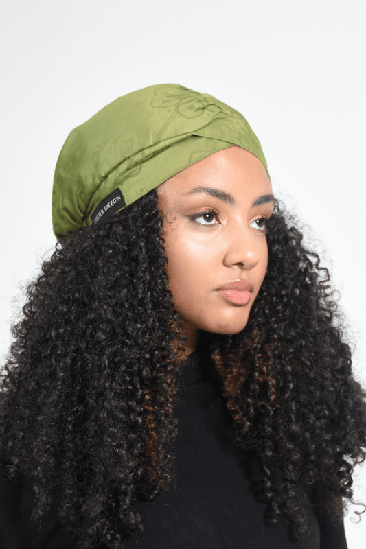 Satin Lined Beanie in Green Olive Solid Damask Fabric
